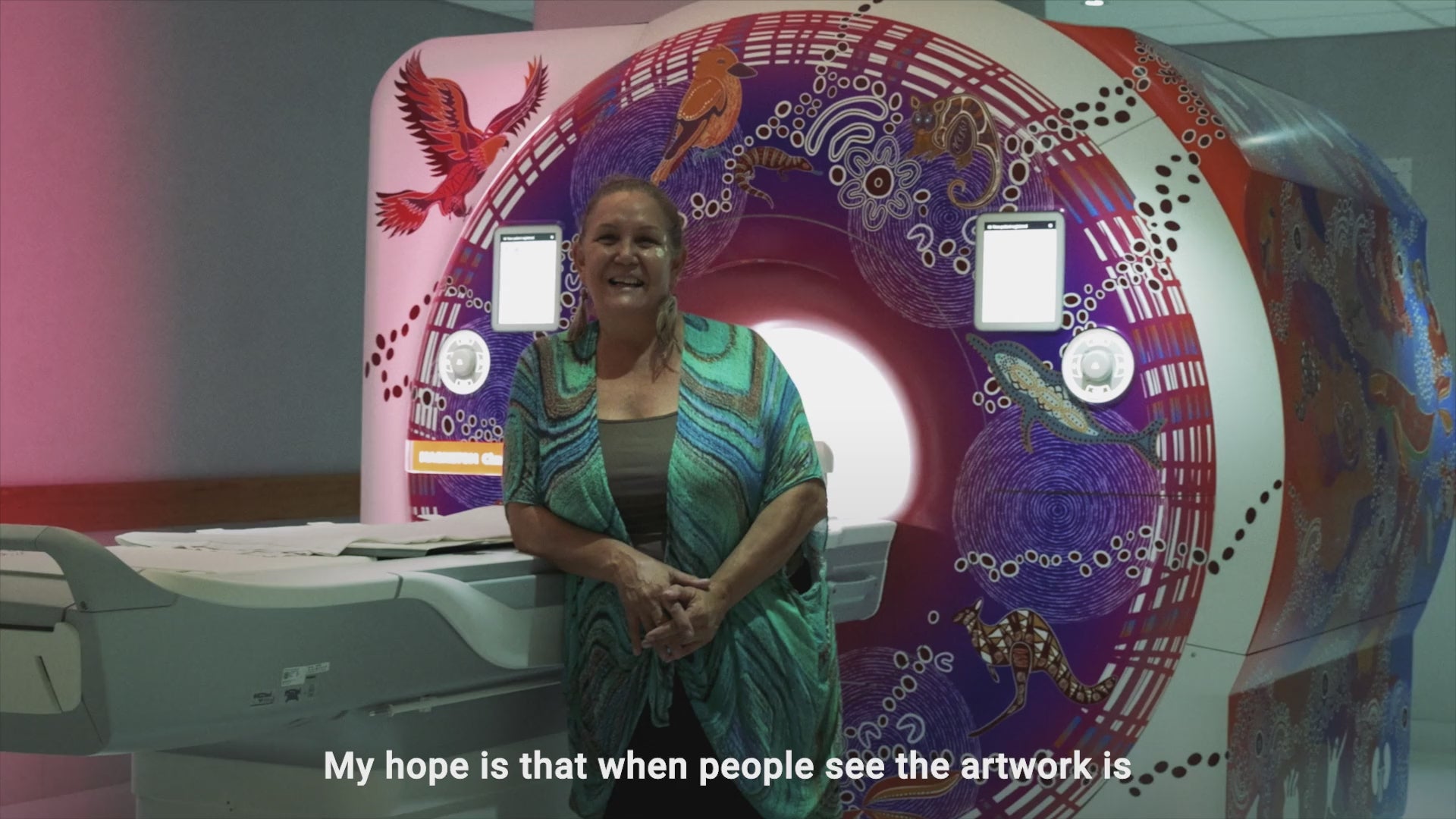 A full MRI machine wrap, transforming the clinical equipment into a calming and culturally rich experience
